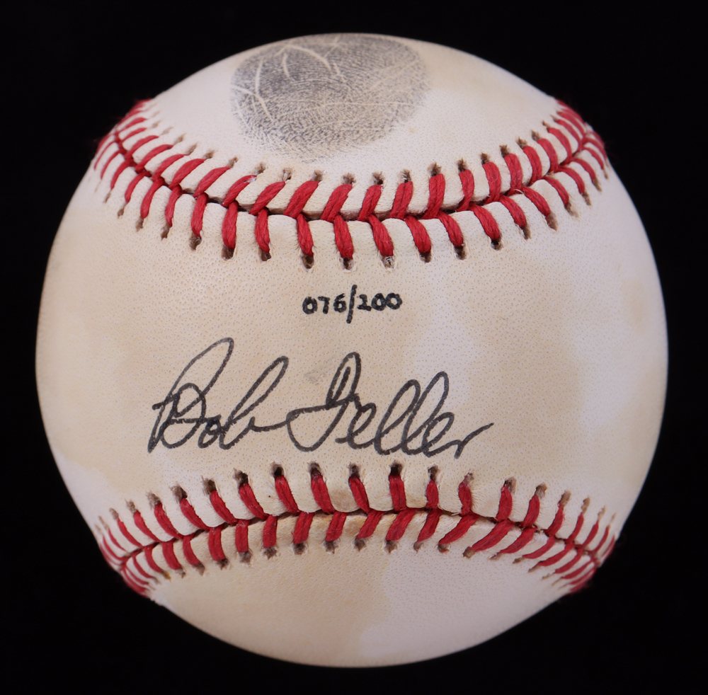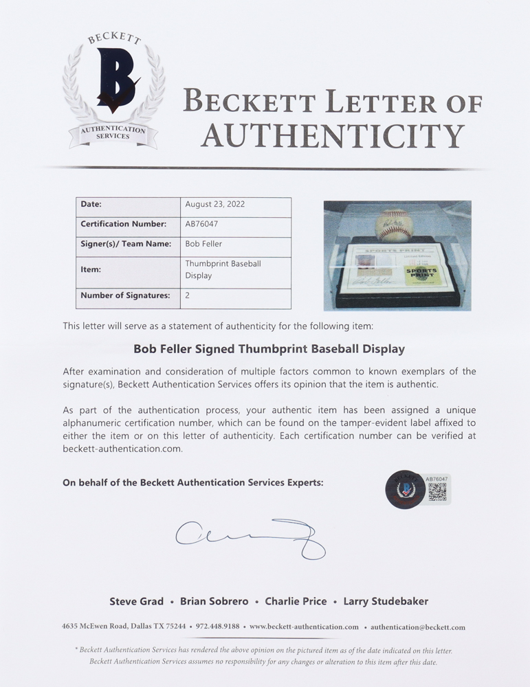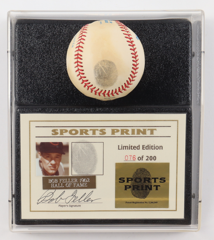 Bob Feller Pelota de Béisbol Autografiada Edición Limitada con Huella Digital y Estuche de Exhibición